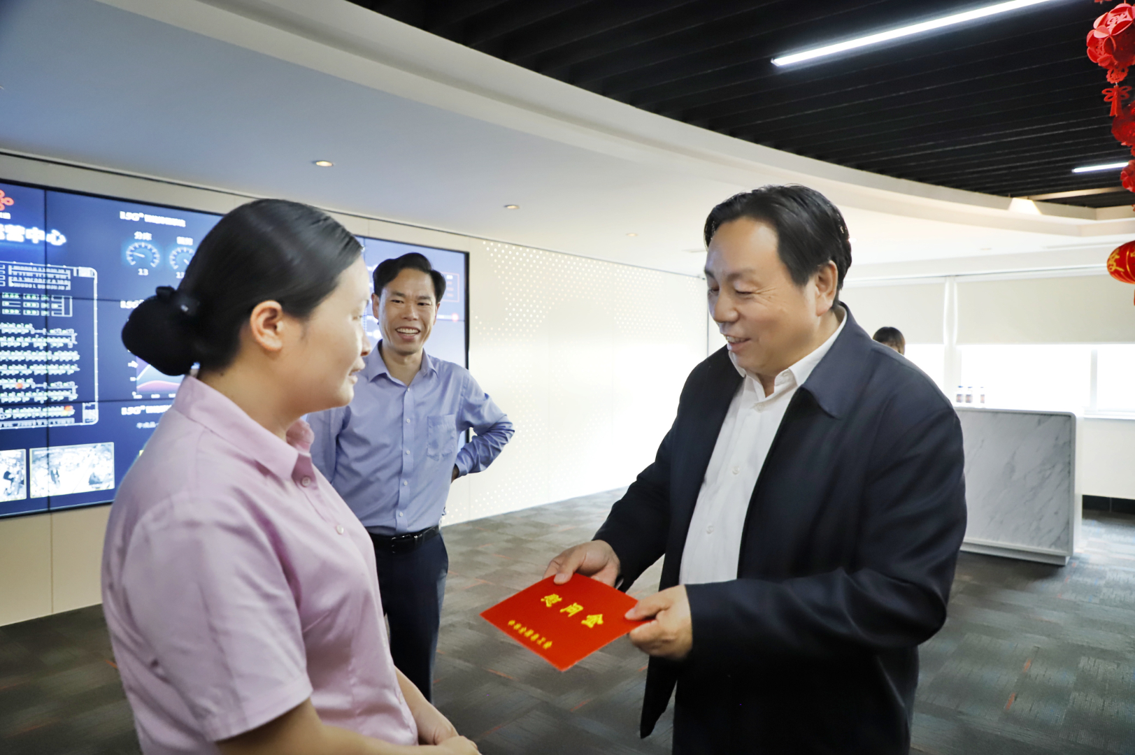 5月21日,中央纪委国家监委驻全国总工会机关纪检监察组组长、全国总工会党组成员 房建孟 一行到雅戈尔走访慰问。雅戈尔集团党委副书记 胡纲高、工会主席 刘新宇陪同。