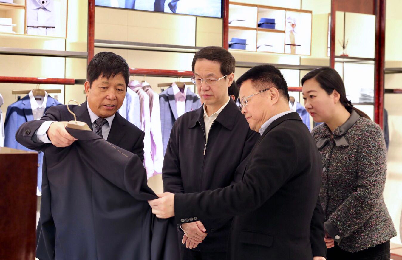 4月9日上午,全国人大财经委副主任郭庆平带领全国人大财经委调研组莅临雅戈尔,雅戈尔集团董事长李如成陪同考察了宁波普济医院项目模型、雅戈尔品牌展厅以及西服智能工厂。