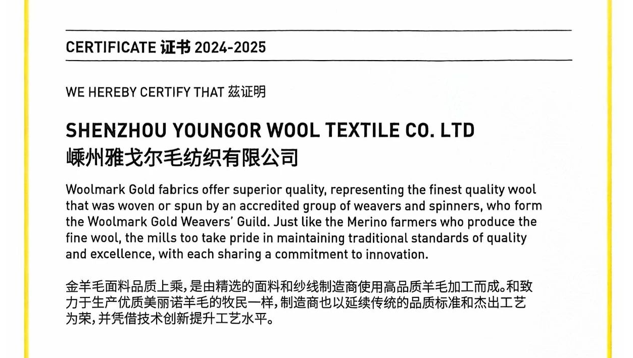 • 全球15家,全国仅3家,雅戈尔毛纺获“金羊毛”权威认证!