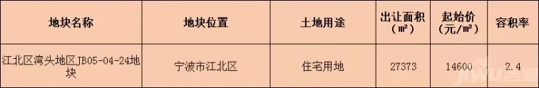 2018年11月26日,宁波市江北区湾头地区JB05-04-24地块正式出让。最终经过173轮,雅戈尔置业公司以16410元/㎡楼面价拿下宁波市江北湾头地块。